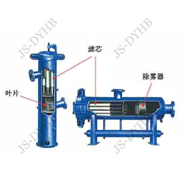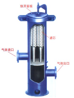 幹氣過(guò)濾(lǜ)器是一種(zhǒng)濾芯式過(guò)濾器,內部由多支濾芯組成,過濾的原氣由入口通過導流管或(huò)者旋風管,將氣(qì)體中含有的固體顆粒及油霧(wù)碰(pèng)撞落入容器底部,通過導管進入分離器底部積液包,可(kě)通過觀察視鏡窗口外排。然後從濾芯外表麵進入濾芯內部進行(háng)精度(dù)高分離,潔淨後的氣體導入絲網除沫(mò)器,經(jīng)過三(sān)級過濾(lǜ)導出。
