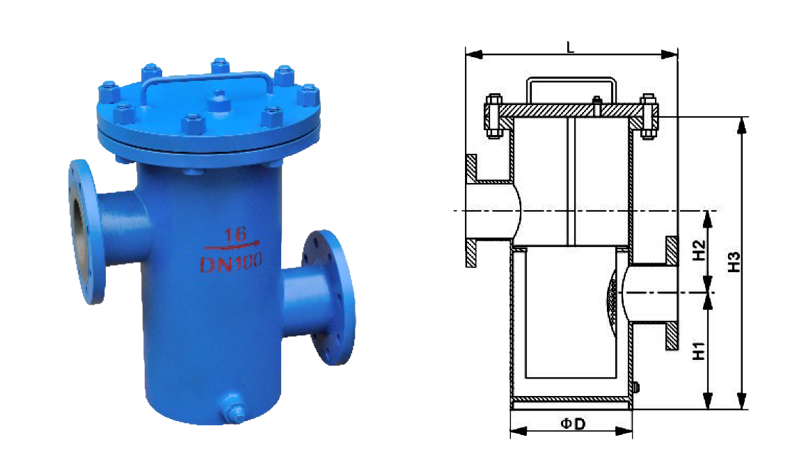高低籃式(shì)過濾器主要由進出口的接管和法蘭、筒體、濾籃、筒體法蘭、筒體法蘭蓋及緊(jǐn)固件等組成。當液體通過入口進去筒體流經濾籃後, 固體雜質(zhì)顆(kē)粒被阻攔在濾籃內,而潔淨的流體通(tōng)過濾籃、由過濾器出口流出。當需要清洗時,打開底(dǐ)部排汙口,排淨(jìng)流體,拆卸筒法蘭蓋,清洗後重(chóng)新裝入即可。適(shì)用於:水、蒸汽(qì)、油品等介質,使用(yòng)溫度(dù)一般在-40℃~300℃。(注:具體使用(yòng)條件以過濾器設計條件為準。) 本廠的高低(dī)籃式過(guò)濾器可以根據客戶的實際使用情況進行設(shè)計。